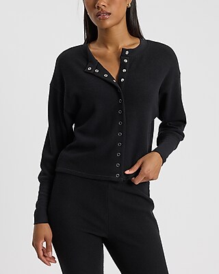 Waffle Long Sleeve Button Front Top in Franklin, TN
