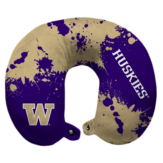 Washington Huskies 12'' x 13'' Splatter Print Polyester Travel Pillow