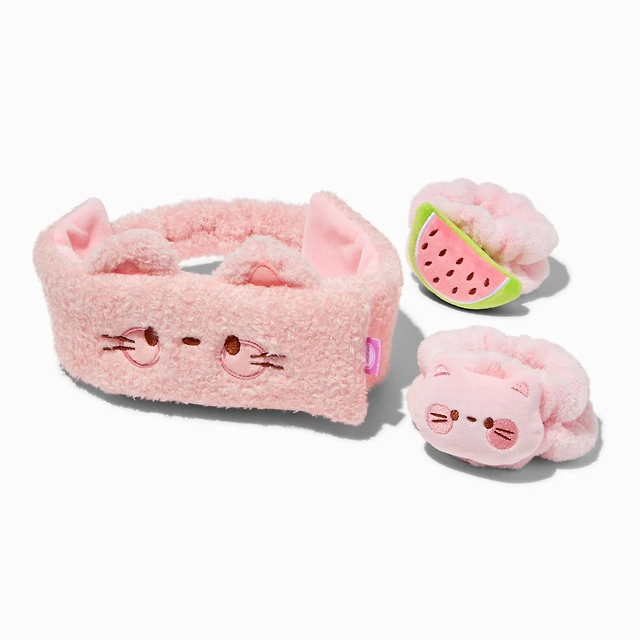 Watermelon Cat Makeup Bow Headwrap & Face Washing Wrist Bands - 3 Pack