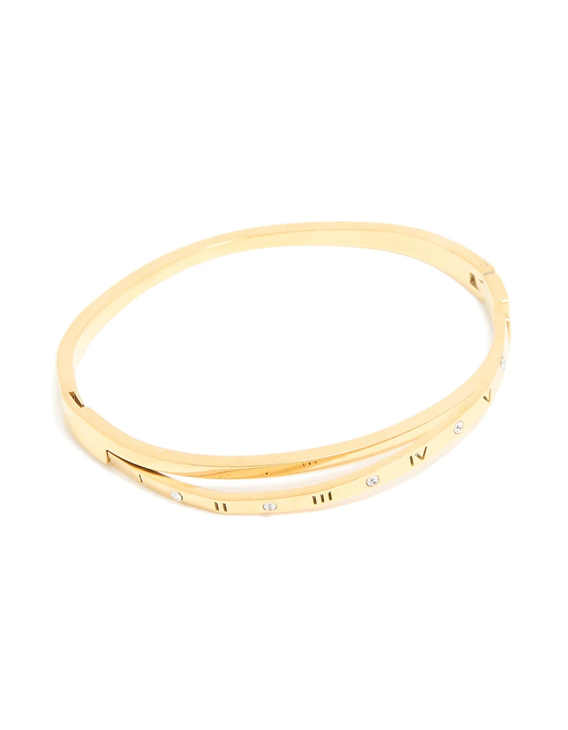 Waterproof Gold Plated Stainless Steel Diamante Roman Numeral Hinged Bangle