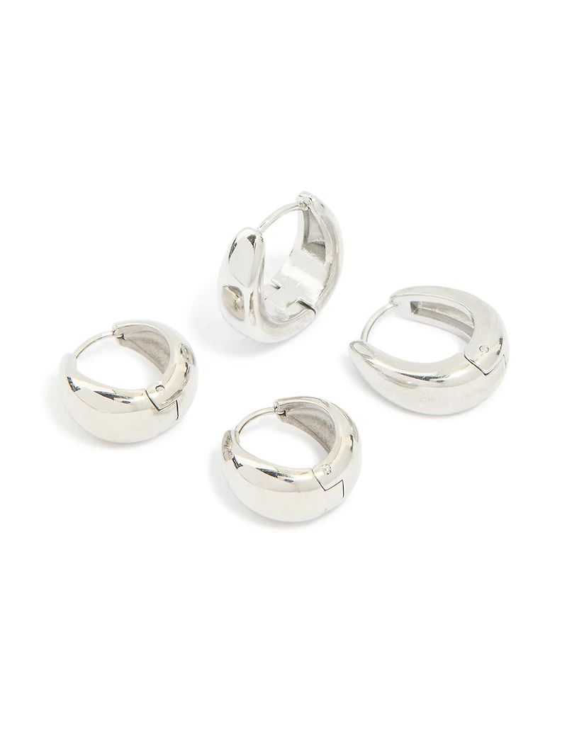 Waterproof Stainless Steel Chunky Huggie Earrings 2 Pack