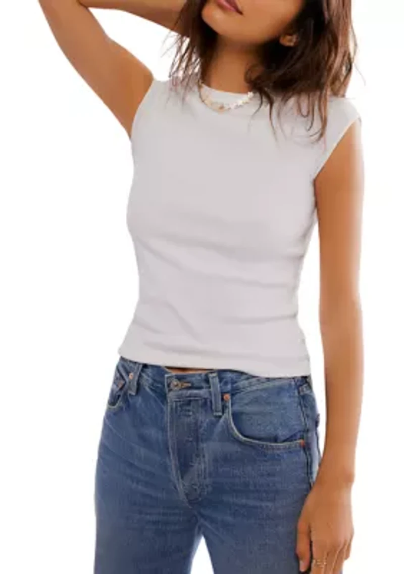 Simple yet essential, this ribbed, stretchy tee from Free People pairs perfectly with everything from jeans to skirts. Pullover Crew neck Short cap sleeves Imported Product Specifications 22.5" L Material & Care Cotton, spandex Machine washable
