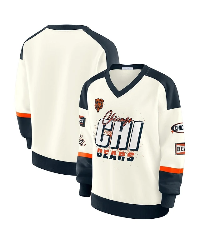 Wear by Erin Andrews Women's Cream Chicago Bears Racing Crew V-Neck Sweatshirt