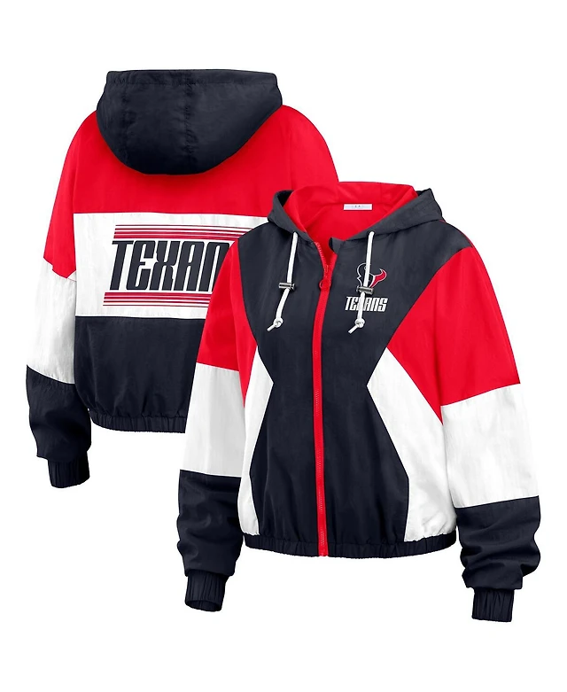 Wear by Erin Andrews Women's Navy Houston Texans Color Block Full-zip Windbreaker Jacket