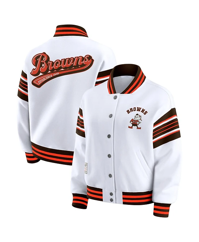 Women's WEAR by Erin Andrews White Cleveland Browns Full-Snap Fleece Sweatshirt Jacket