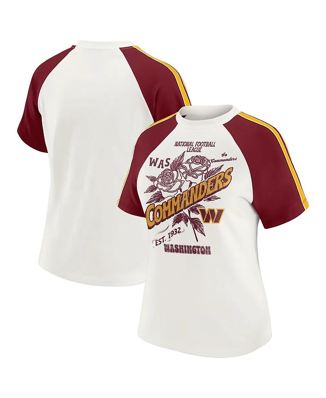 Wear by Erin Andrews Women's White Washington Commanders Sleeve Stripe Distressed Raglan T-Shirt
