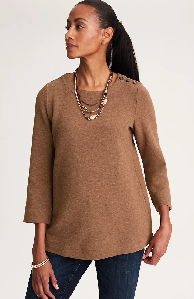 buttoned-shoulder knit top