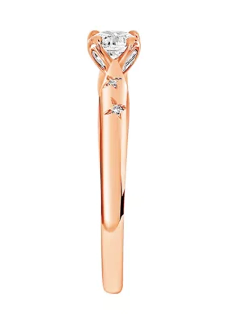 WEB 14KR 1/3CTW RD DIA ENG RING 5 stones 5 Color rating: I Clarity rating: I/I2 Polished finish Prong setting Imported Product Specifications 0.35 Material & Care Metal, Rose gold Clean with a soft cloth.