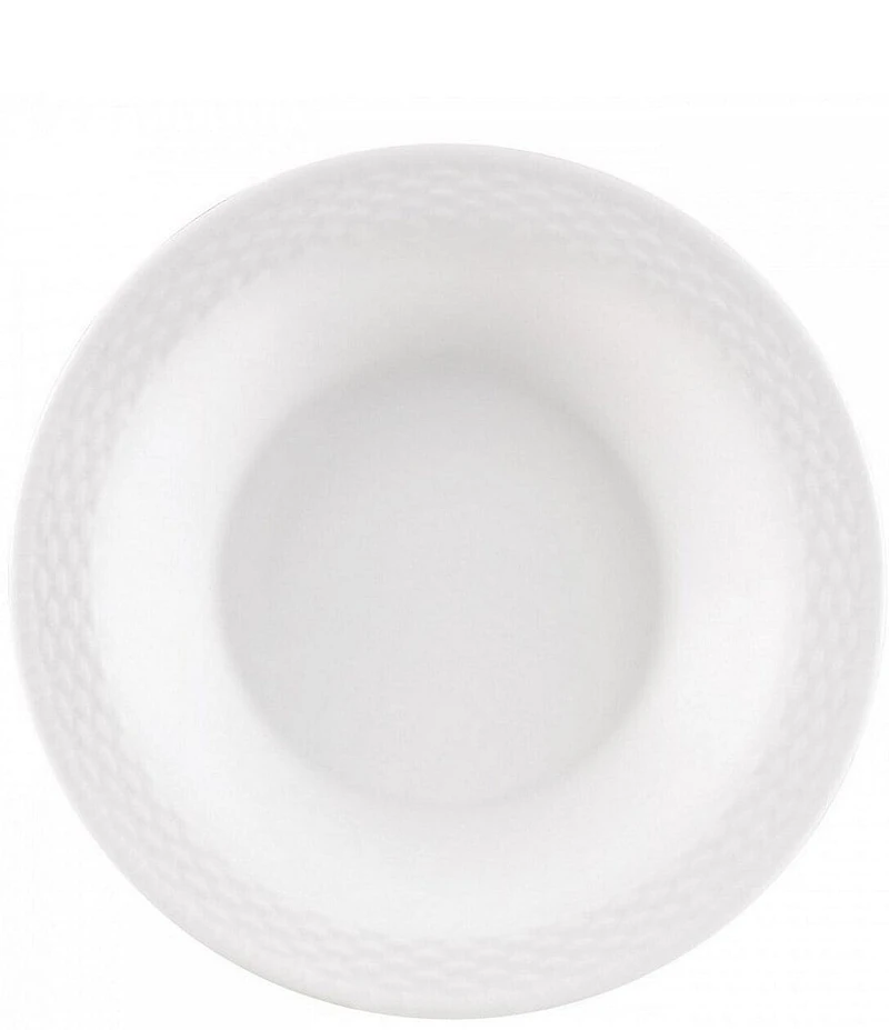 This pure white bone china features a sculpted pattern inspired by the meticulous handcrafted baskets of Nantucket, Massachusetts from the late 19th century. Approx. 10.25". Dishwasher and microwave safe. Made in the United Kingdom and Indonesia. Please allow 2-3 weeks for delivery.