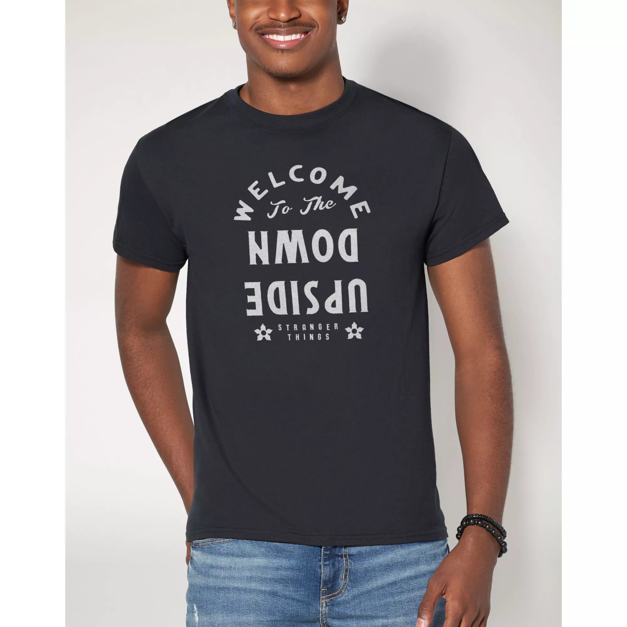 Welcome to the Upside Down! Things are a little strange here. This black graphic tee is perfect for fighting Demogorgons or watching Stranger Things!