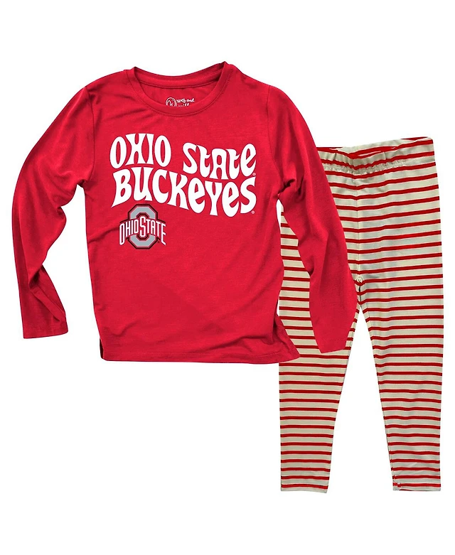 Wes & Willy Baby Boys and Girls 2-Piece Ohio State Buckeyes Long Sleeve Top and Striped Tri-Blend Leggings Set