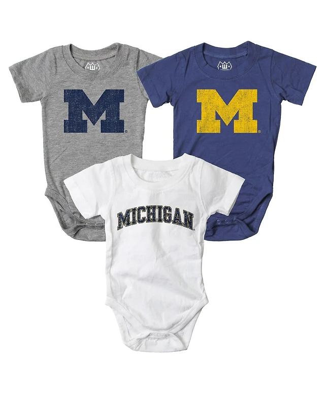 Wes & Willy Baby Boys and Girls 3-Pack Navy/White/Heather Gray Michigan Wolverines Bodysuit