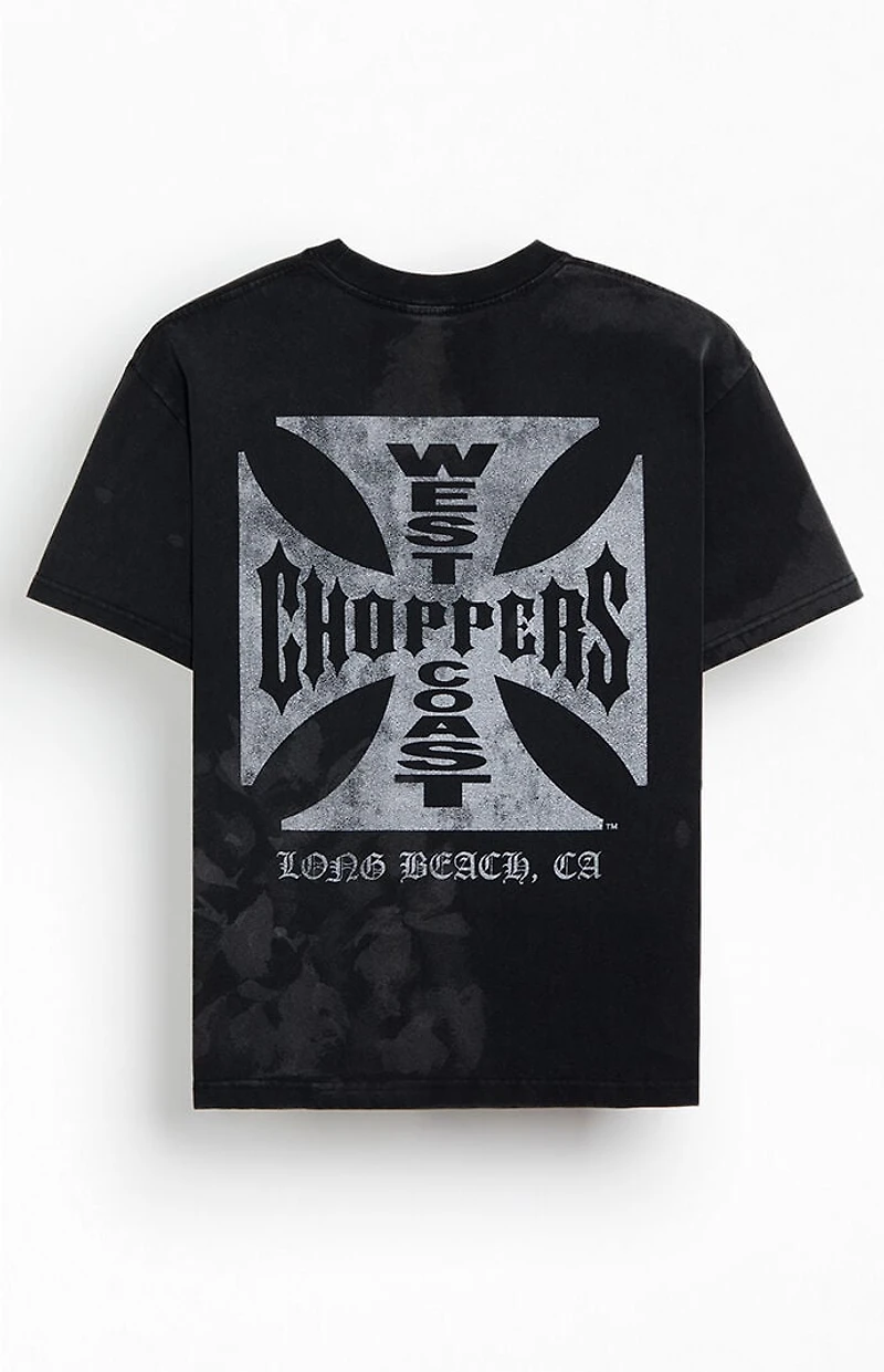 The Bleach Cross Logo T-Shirt from West Coast Choppers brings bold, rebellious style with standout graphic details. It features short sleeves, a crew neckline, West Coast Choppers cross graphics on the front and back, and edgy bleach effects for a worn-in, street-ready look.
