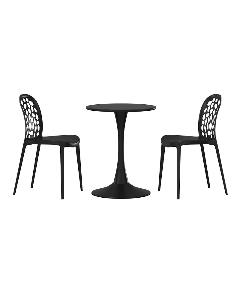 Elevate your outdoor gatherings with this two-person dining set. The round metal bistro table features a durable, rust-resistant e-coating and a wide flat base for added stability. Two stackable, lightweight chairs made from Uv-resistant polypropylene resin allow easy rearranging. Their avant-garde, ventilated, arched backrests enhance airflow, comfort, and style. The chairs arrive fully assembled, and the table sets up quickly, making this 3-piece set a perfect patio addition for the season.