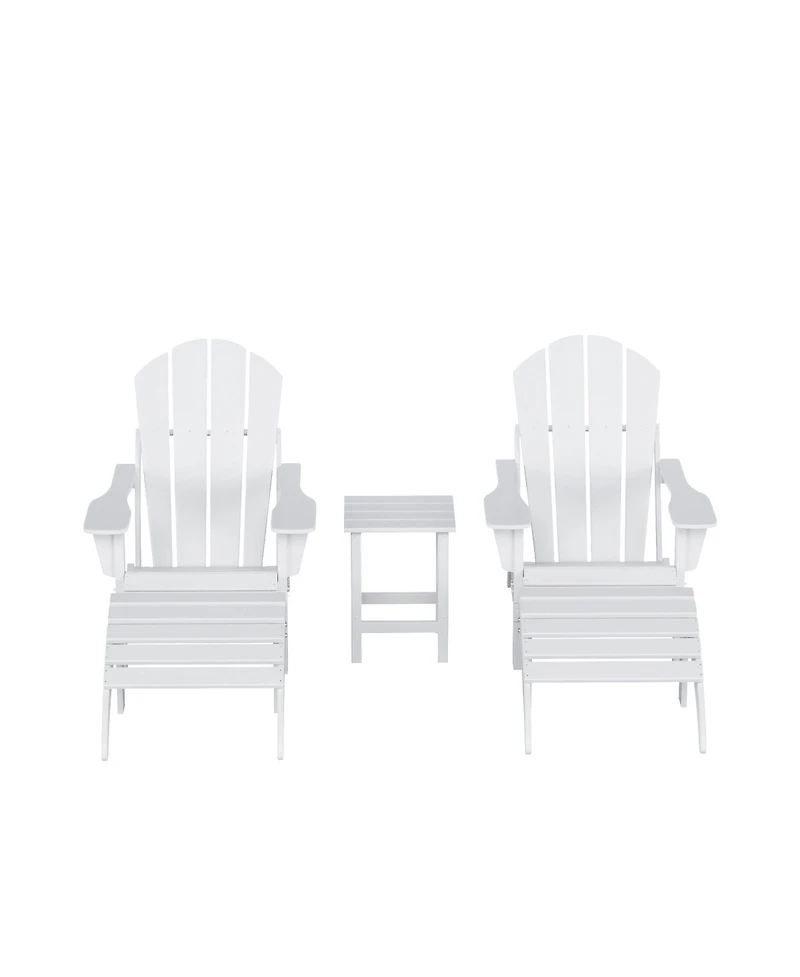 Sit back, relax, and catch a tan or enjoy some family time on this 5-piece Adirondack chair with ottoman and table set. Perfect for the outdoors, the Hdpe construction can withstand the outdoor elements. Sit down in comfort with the wide armrests, contoured, waterfall seat and low seat depth.