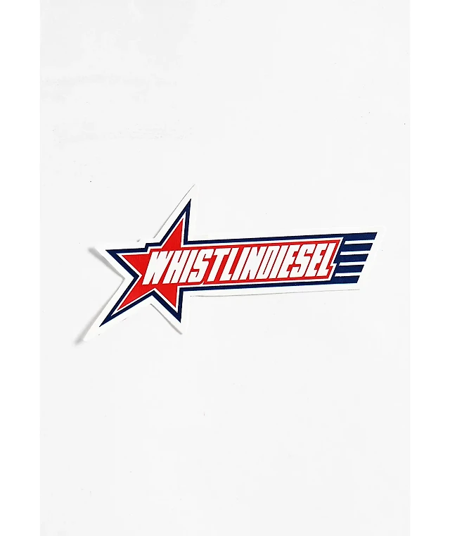 With a unique shooting star shape, this die cut WhistlinDiesel sticker looks great on any laptop, water bottle, or other flat surface. "WhistlinDiesel" text in white stands out against a red background outlined in blue.