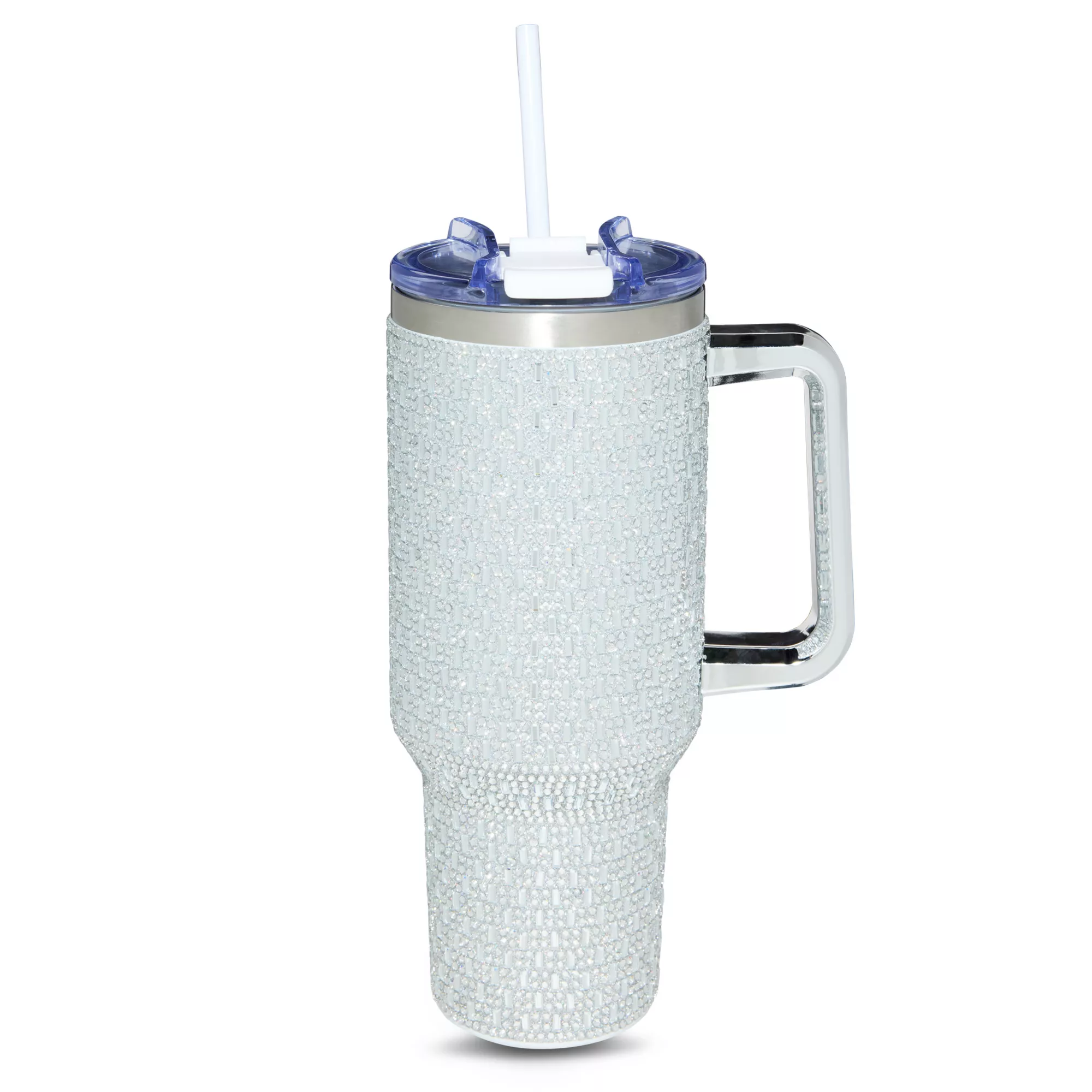 White and Silver Rhinestone Travel Tumbler with Straw - 40 oz. in Franklin, TN