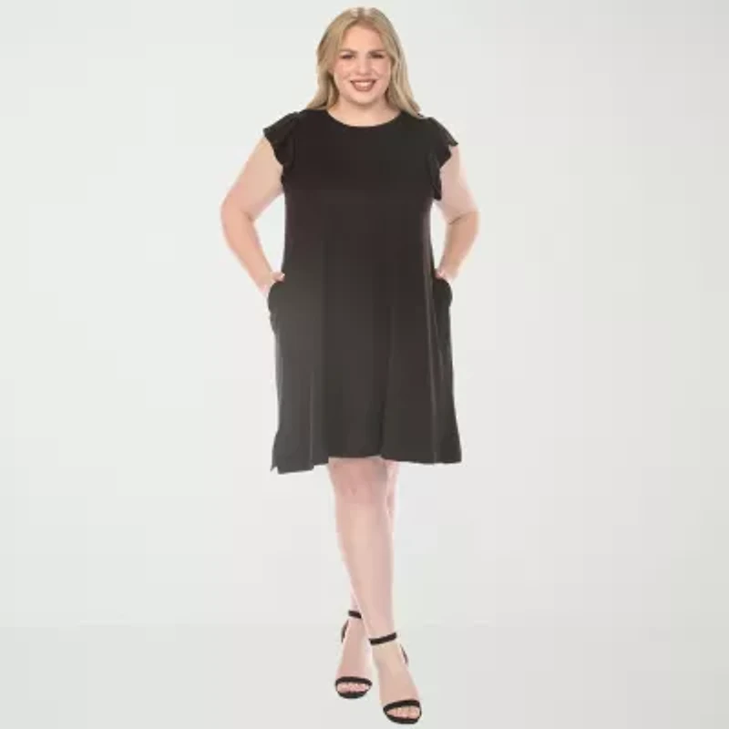 White Mark Crew Neck Ruffle Sleeve Womens Plus Short Shift Dress