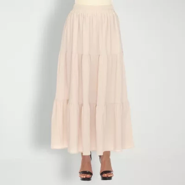 FULL TILT Tiered Womens Maxi Skirt - WHITE