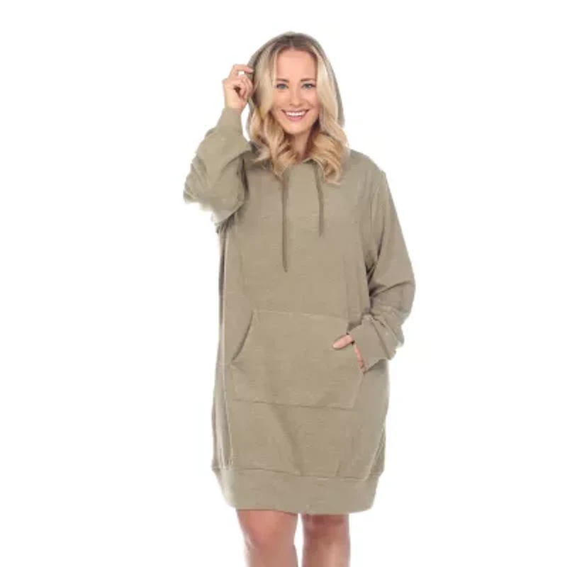 This White Mark women's plus hoodie dress is a chic casual staple for the cooler months. Made from a soft stretch-knit, this hooded pullover sweater dress has a drawstring closure and a front kangaroo pocket - wear it with sneakers.