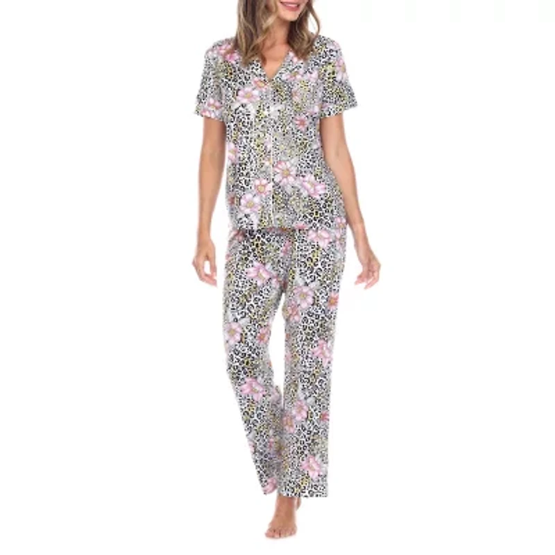 White Mark Womens Short Sleeve 2-pc. Pajama Sets