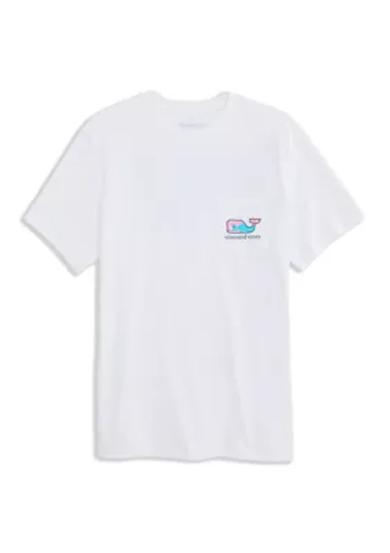 This Vineyard Vines t-shirt features the iconic whale logo on a rippled texture, adding a fun, casual vibe. With a convenient chest pocket and comfortable short sleeves, it’s perfect for everyday wear. Crew neck Short sleeves with cuffs and hem Screenprint front and back Imported Material & Care 100% cotton Machine washable