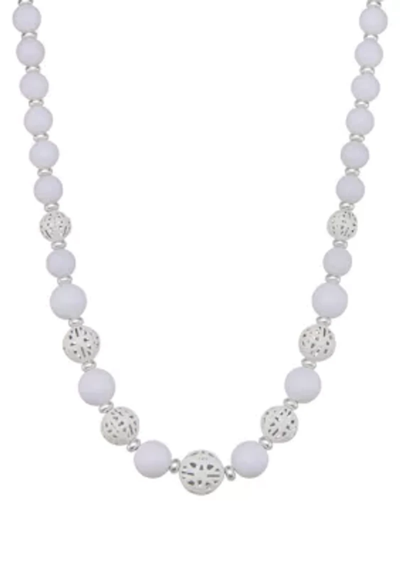 White Silver Tone Beaded Collar Necklace