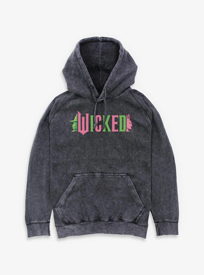 Wicked Elphaba and Glinda Silhouettes Logo Mineral Wash Hoodie