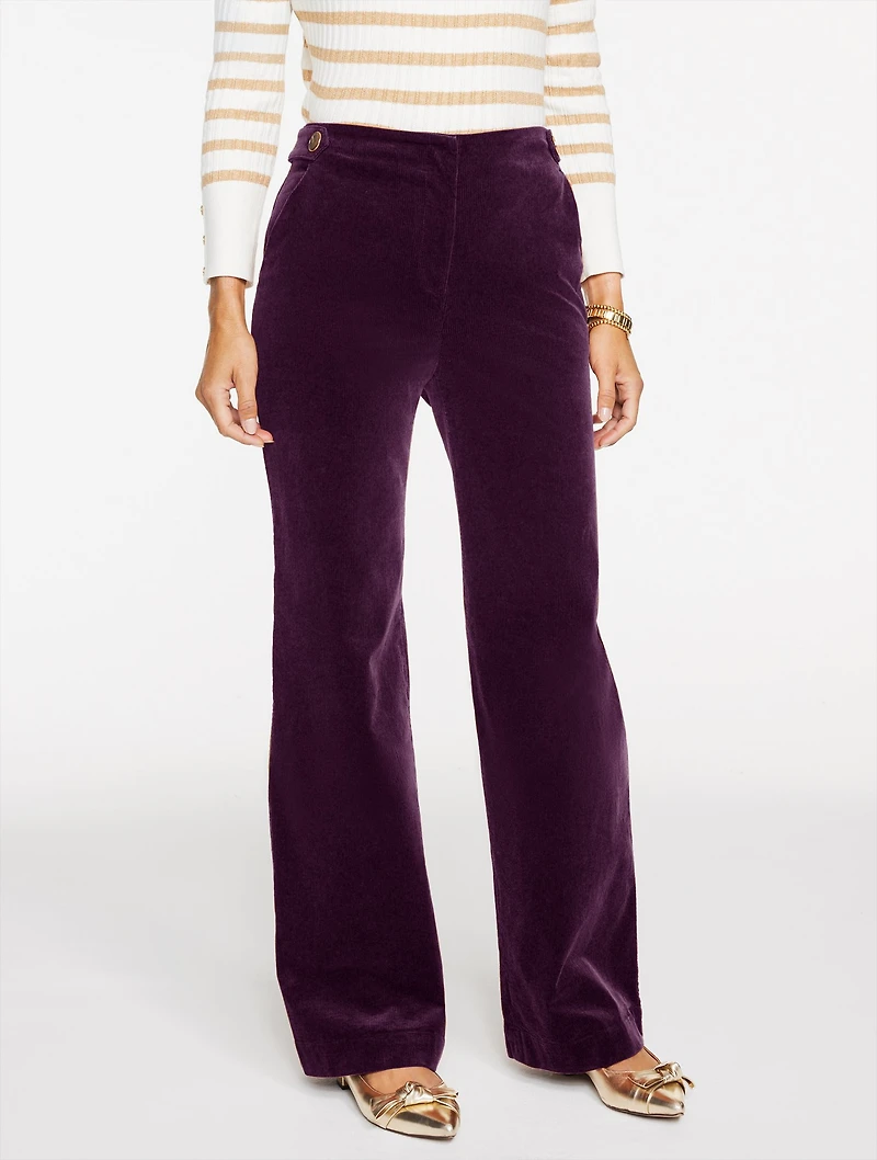 Plush corduroy adds soft texture to our favorite wide leg pants. Effortless silhouette drapes perfectly with a figure-boosting high waist. Just-right for your work-to-weekend looks.
