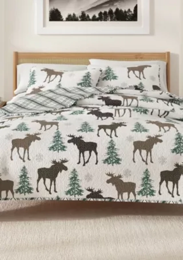 Linery & Co. Moose & Evergreens Microfiber Quilt Set With Shams