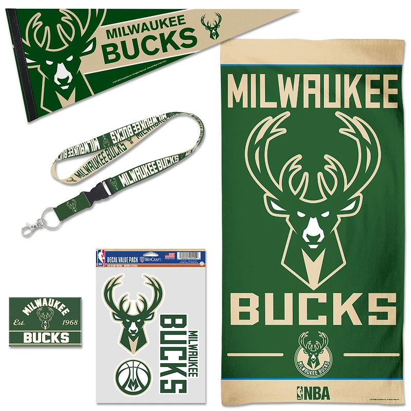 Be ready to show team spirit anywhere with this Milwaukee Bucks Fan accessories pack from WinCraft. It includes a pennant, lanyard, magnet, towel and three-pack of decals. With bold graphics, this pack has everything needed to turn any room into the best Milwaukee Bucks fan cave.