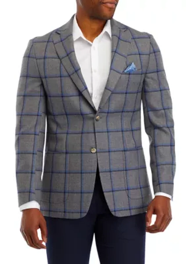 IBIZA AZURE Mens Windowpane Modern Fit Sport Coat
