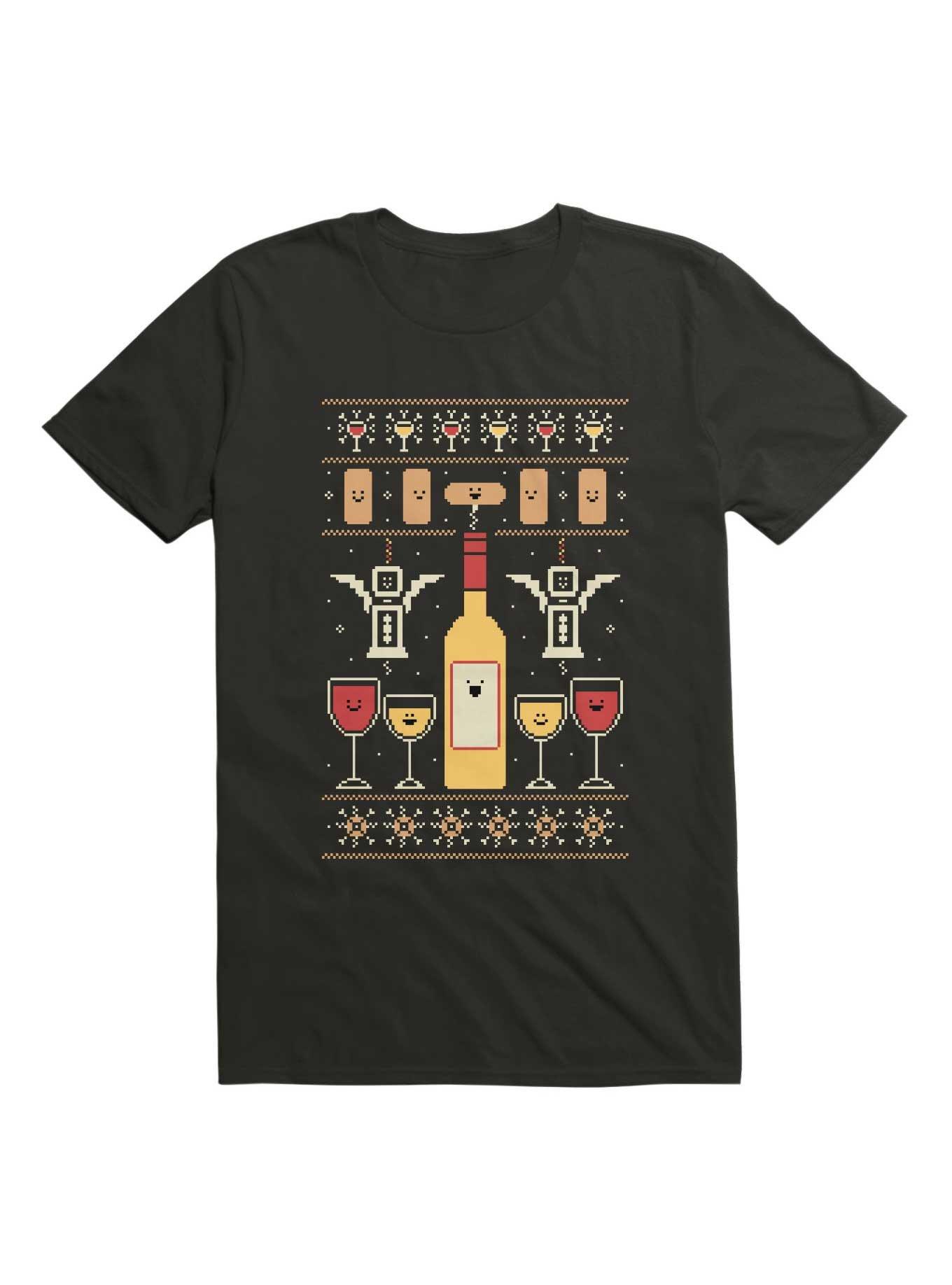 Wine Christmas Ugly Sweater Pattern T-Shirt