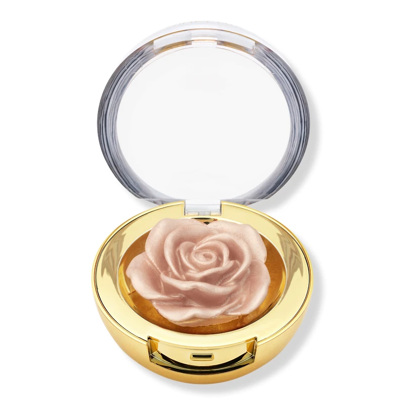 CHEEKY ROSE HIGHLIGHTER CHAMPAGNE. Benefits: Cream highlighter formula melts into skin & blends out seamlessly. Infused with carnauba & vitamin E for smooth, blendable results. Delivers pearlescent dewy radiance. Easy application allows it to be applied with fingers or brush. Key Ingredients: Vitamin E provides moisturizing benefits. Carnauba helps provide a smooth & blendable application experience. :