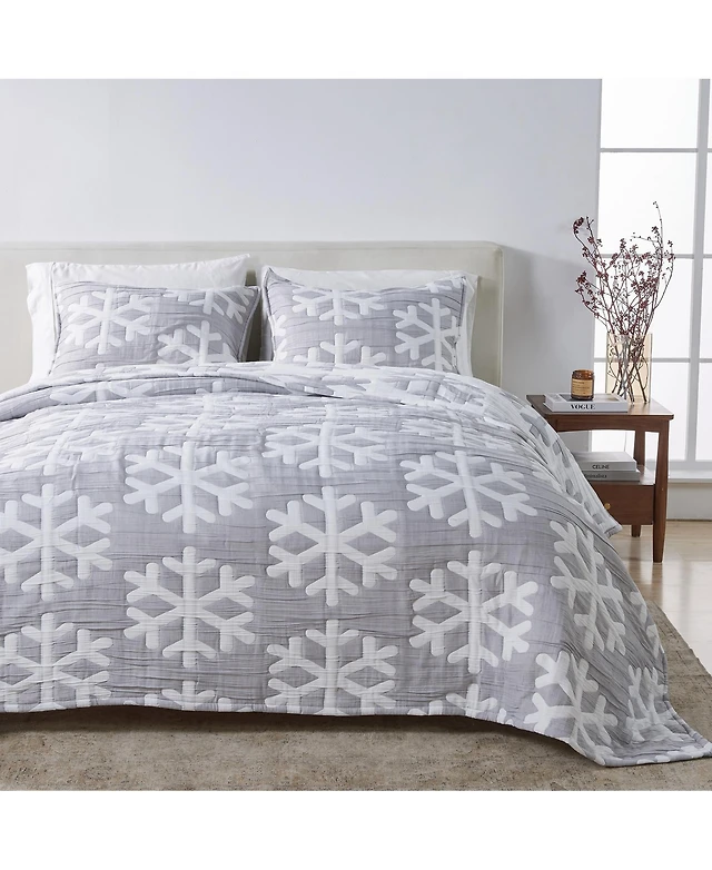 Linery & Co. Winter-Themed Snowflake Matelasse Quilt Set with Shams