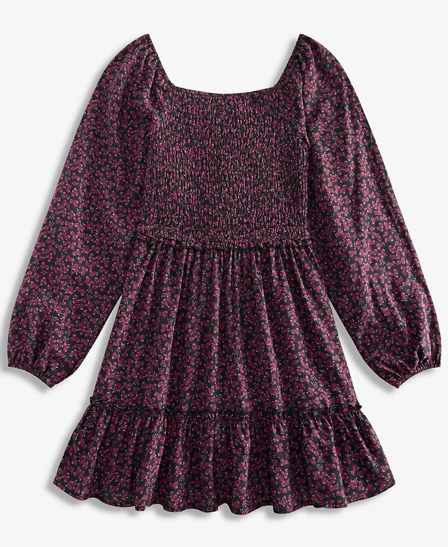 With Jules Big Girls Long-Sleeve Smocked-Bodice Dress
