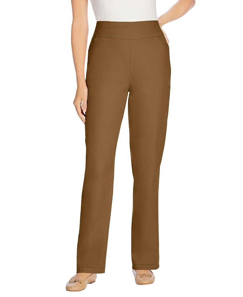 These easy, straight-leg denim jeans are designed with a full flat, no-gap elastic waistband. The jeans provide a smooth look under all your favorite tops and tunics. Enjoy the classic look of a great pair of jeans but move comfortably thanks to allover stretch. Crafted with a full no-gap elastic waistband that lays smoothly on your waist, perfect for all-day wear.The mock fly ensures a sleek look under your favorite tops and tunics, enhancing your silhouette.Lays flat under any tops and sits right over your hips.Enjoy the freedom of movement with soft stretch denim that adapts to your body while providing a relaxed yet secure fit.Practical and convenient flat front pockets and back pockets offer ample storage for your essentials