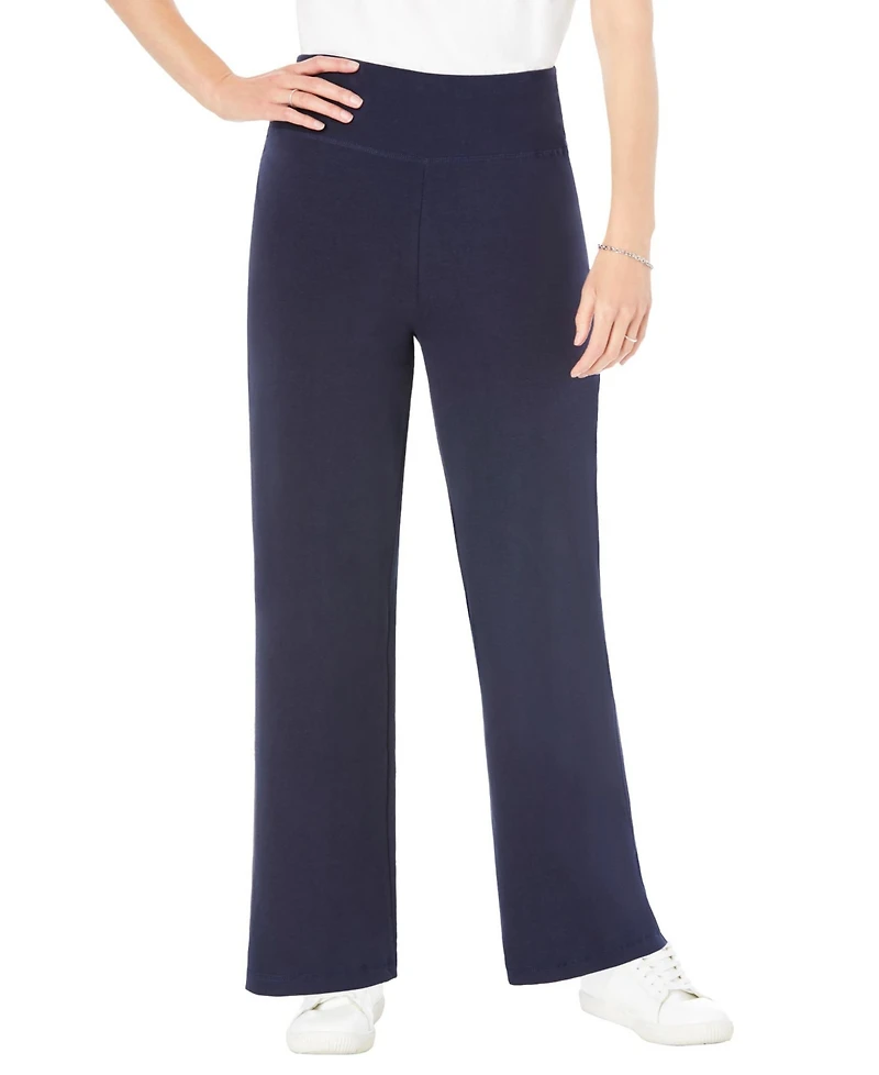 Woman Within Women's Tall Stretch-Cotton Knit Pull-On Wide-Leg Leggings