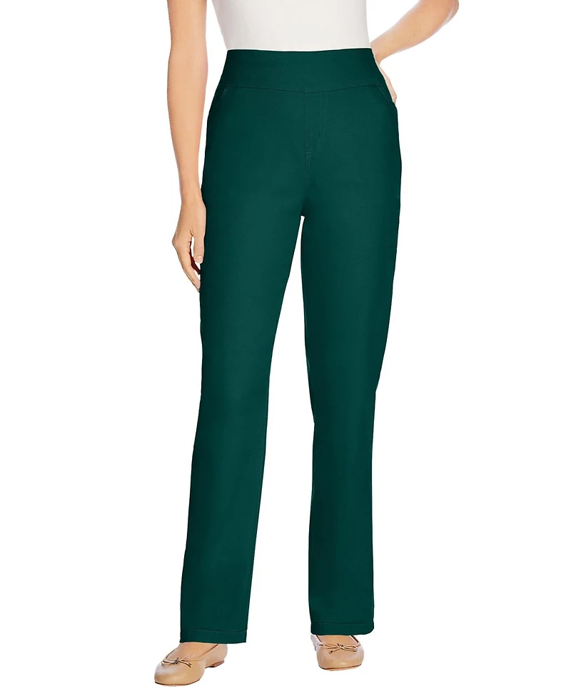 These easy, straight-leg denim jeans are designed with a full flat, no-gap elastic waistband. The jeans provide a smooth look under all your favorite tops and tunics. Enjoy the classic look of a great pair of jeans but move comfortably thanks to allover stretch. Crafted with a full no-gap elastic waistband that lays smoothly on your waist, perfect for all-day wear.The mock fly ensures a sleek look under your favorite tops and tunics, enhancing your silhouette.Lays flat under any tops and sits right over your hips.Enjoy the freedom of movement with soft stretch denim that adapts to your body while providing a relaxed yet secure fit.Practical and convenient flat front pockets and back pockets offer ample storage for your essentials