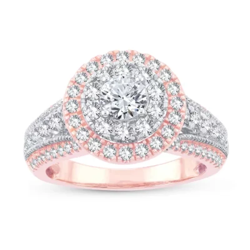 Womens 1 1/2 CT. T.W. Natural White Diamond 10K Gold Rose Round Engagement Ring