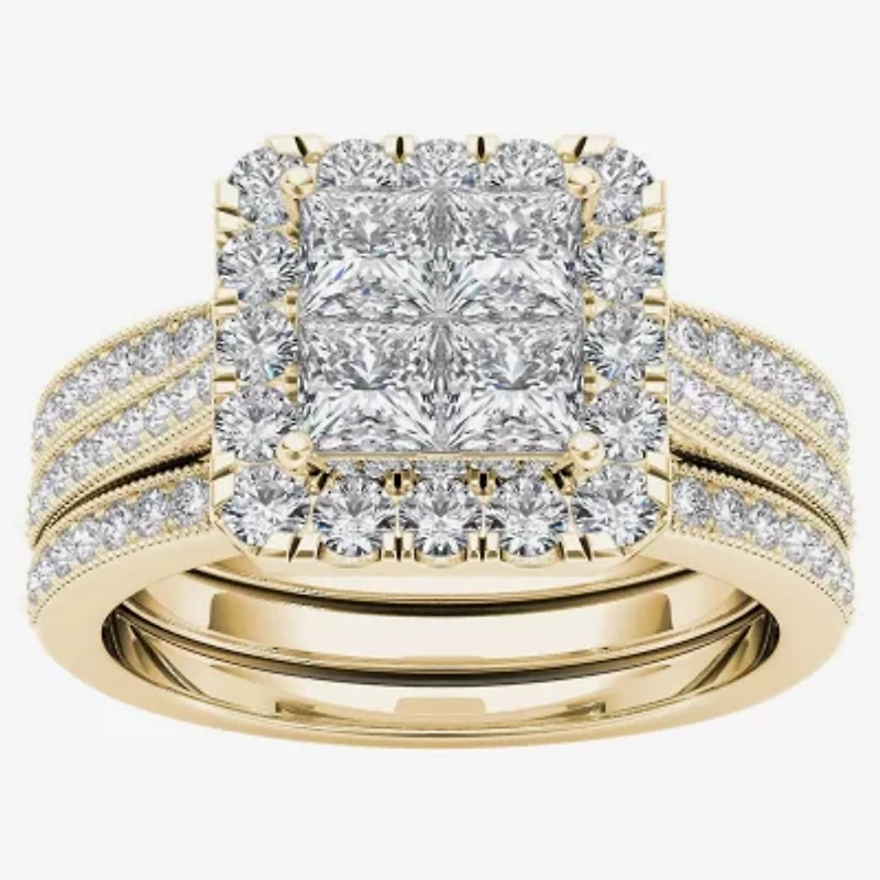 Womens 1 1/2 CT. T.W. Natural White Diamond 14K Gold Side Stone Bridal Set