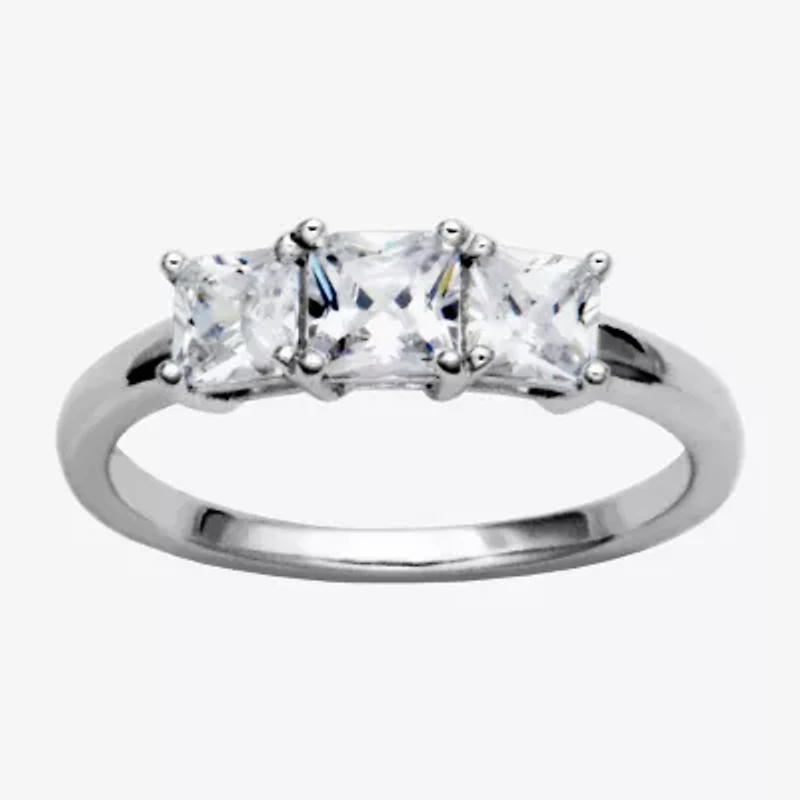 Womens 1 1/3 CT. T.W. Cubic Zirconia Platinum Over Silver Square 3-Stone Engagement Ring