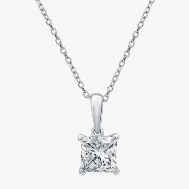 Womens 1 CT. Lab Grown White Diamond 10K Gold 18 Inch Princess Pendant Necklace