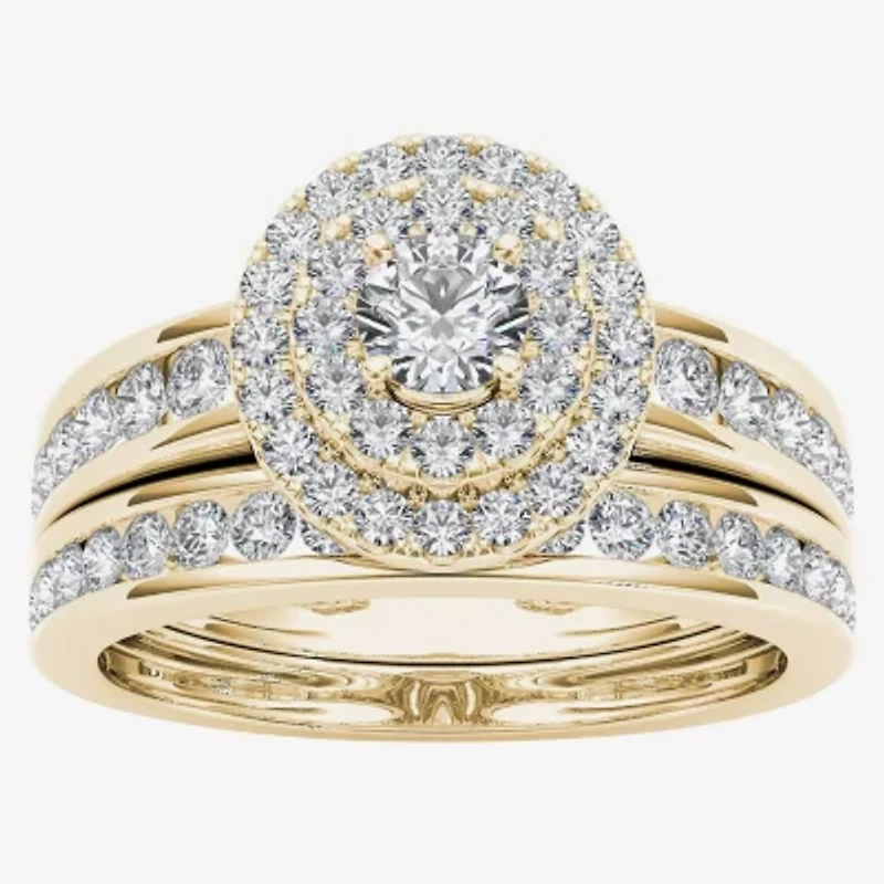 Womens 1 CT. T.W. Natural White Diamond 10K Gold Oval Side Stone Halo Bridal Set