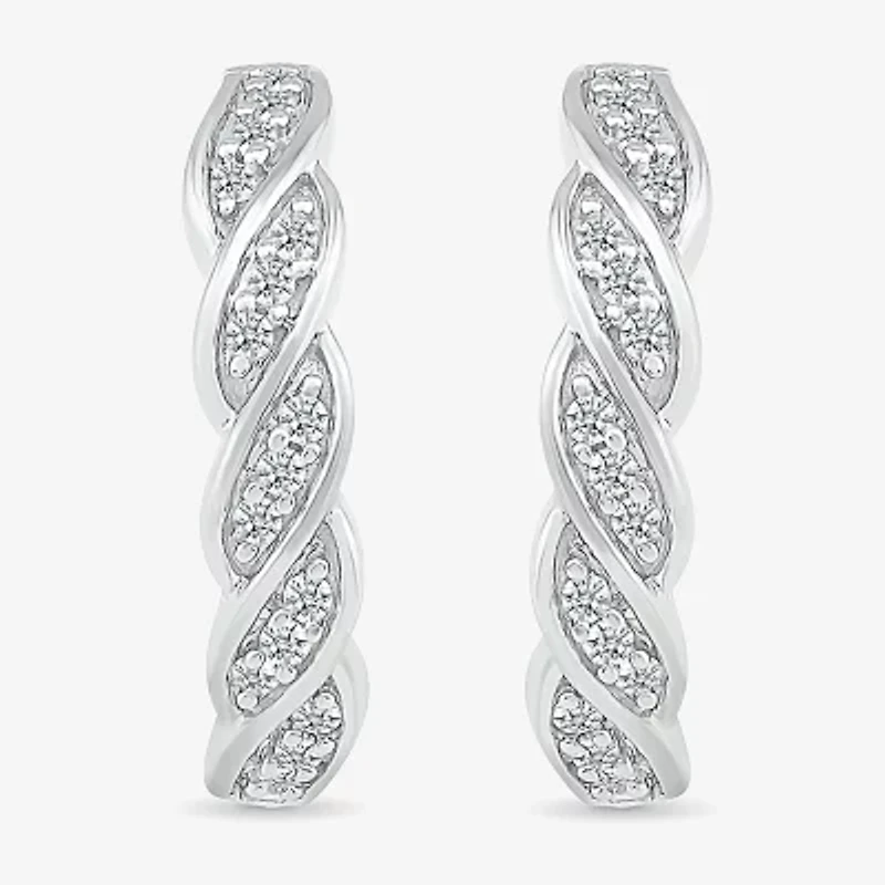 Womens 1/ CT. T.W. Natural White Diamond Sterling Silver 21mm Hoop Earrings