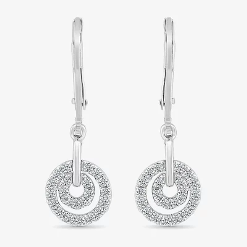 Womens 1/ CT. T.W. Natural White Diamond Sterling Silver Circle Drop Earrings