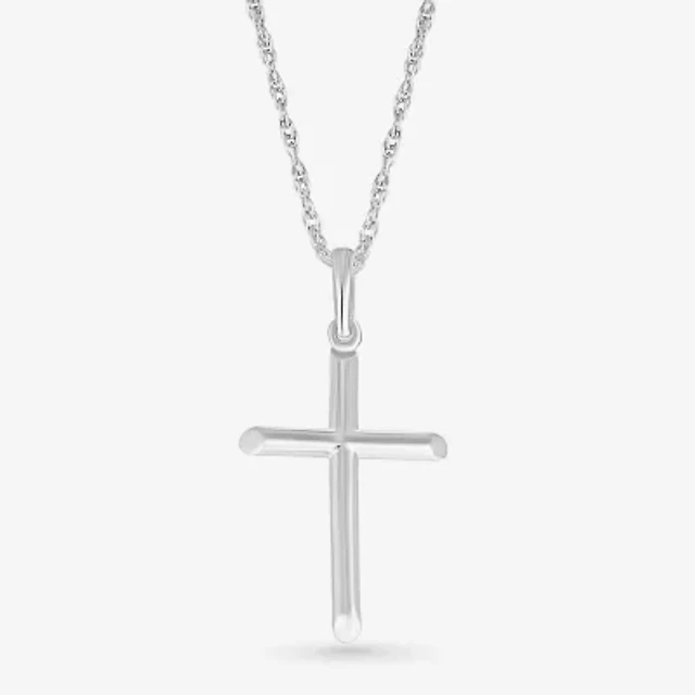 Womens 10K White Gold Cross 18 Inch Pendant Necklace
