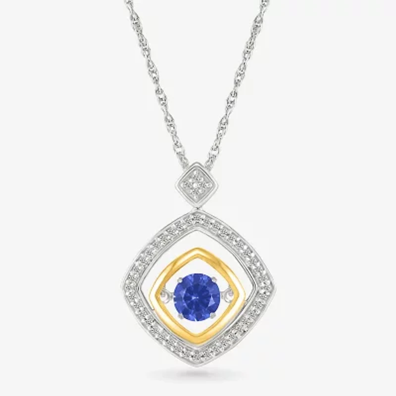 Womens 1/10 CT. T.W. Lab Created Blue Sapphire 10K Gold Sterling Silver Diamond 18 Inch Pendant Necklace in Franklin, TN