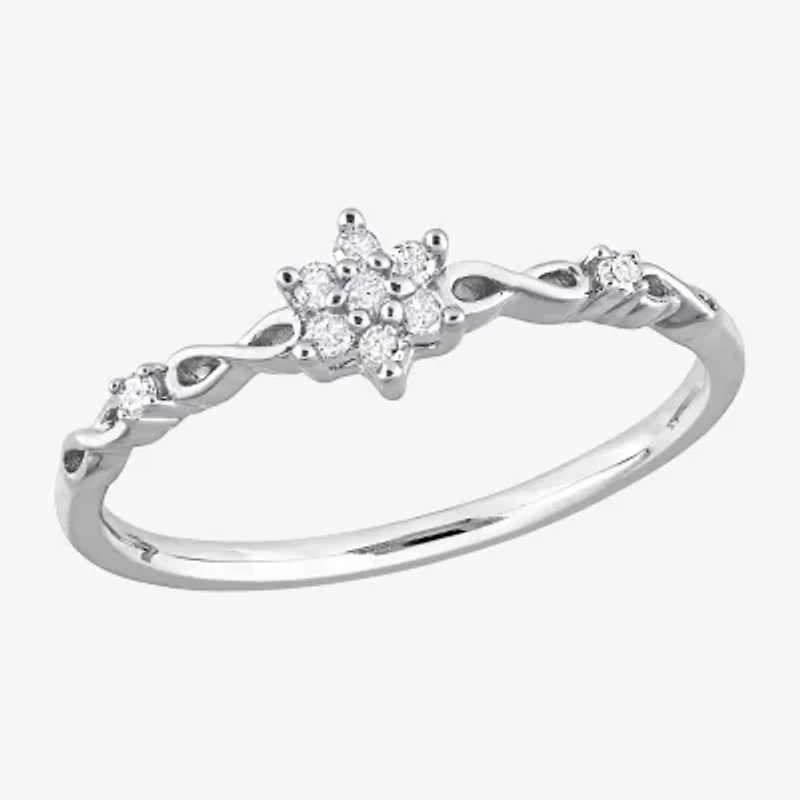 Womens 1/10 CT. T.W. Natural White Diamond Sterling Silver Flower Delicate Stackable Ring