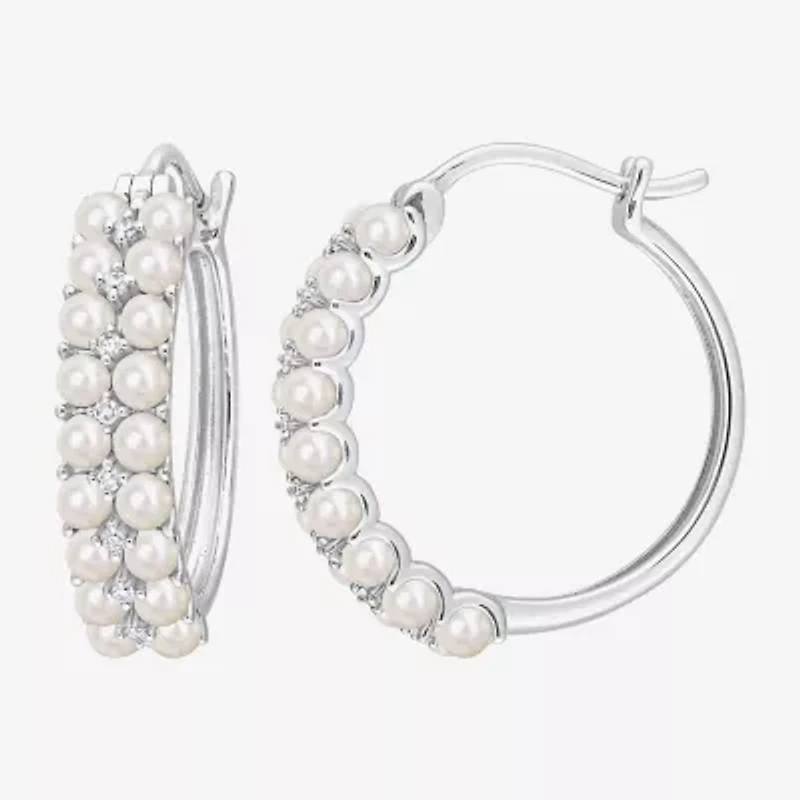 Womens 1/10 CT. T.W. White Cultured Freshwater Pearl 14K White Gold 21.1mm Hoop Earrings